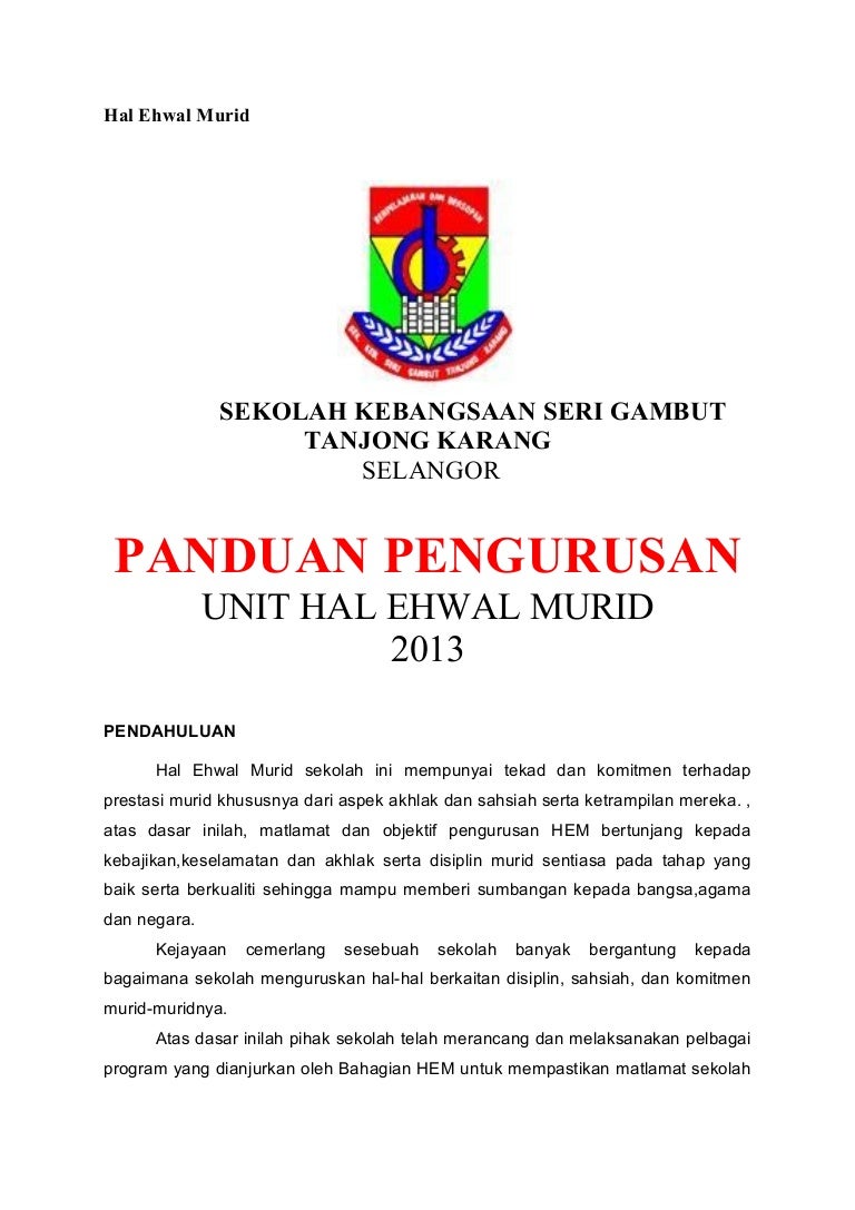 Pengurusan Hal Ehwal Murid HEM di sekolah mempunyai beberapa unit yang perlu diurusakan dengan baik. BUKU PENGURUSAN HAL EHWAL MURID 2020 16. Kepada perkara-perkara umum yang diperlukan oleh seluruh warga sekolah ini.
