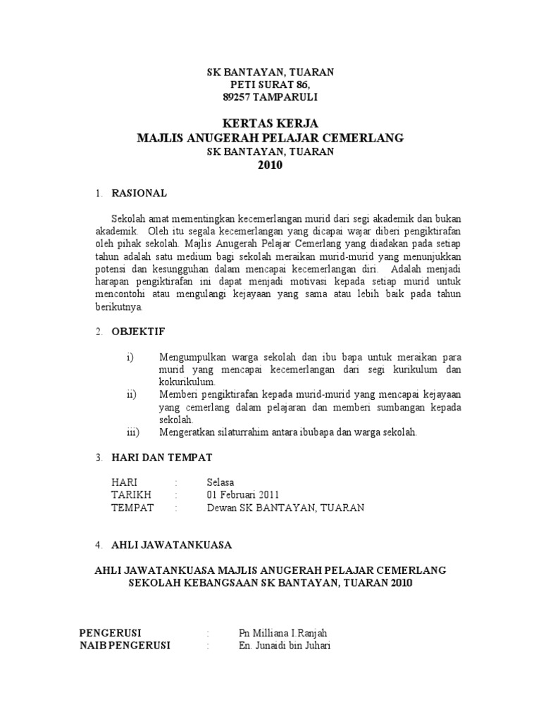Doc Kertas Kerja Majlis Anugerah Kecemerlangan Smk Bukit Saujana 2018 Saujana Smkbs Academia Edu