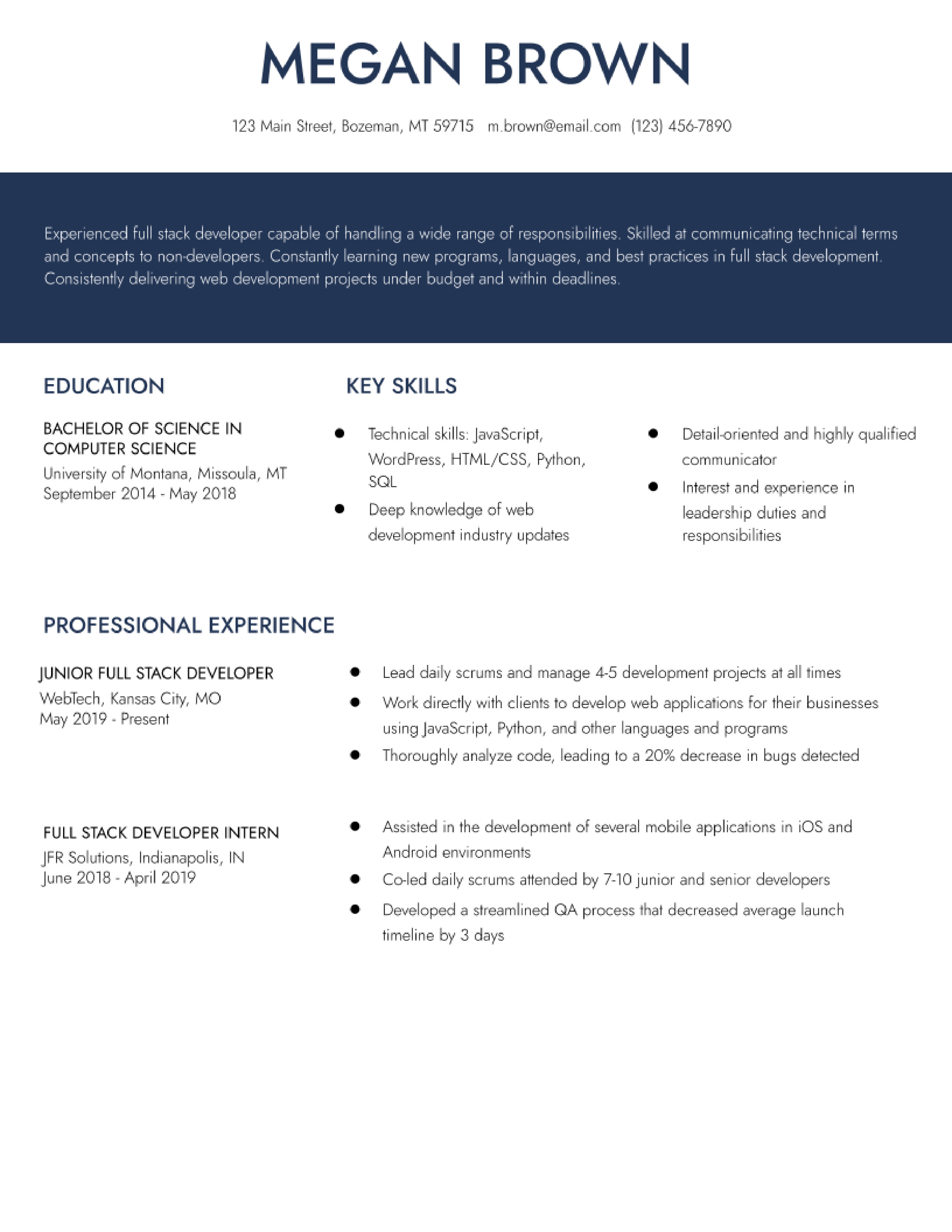 Entry Level Web Developer Resume 2022 Guide With 10 Resume Examples